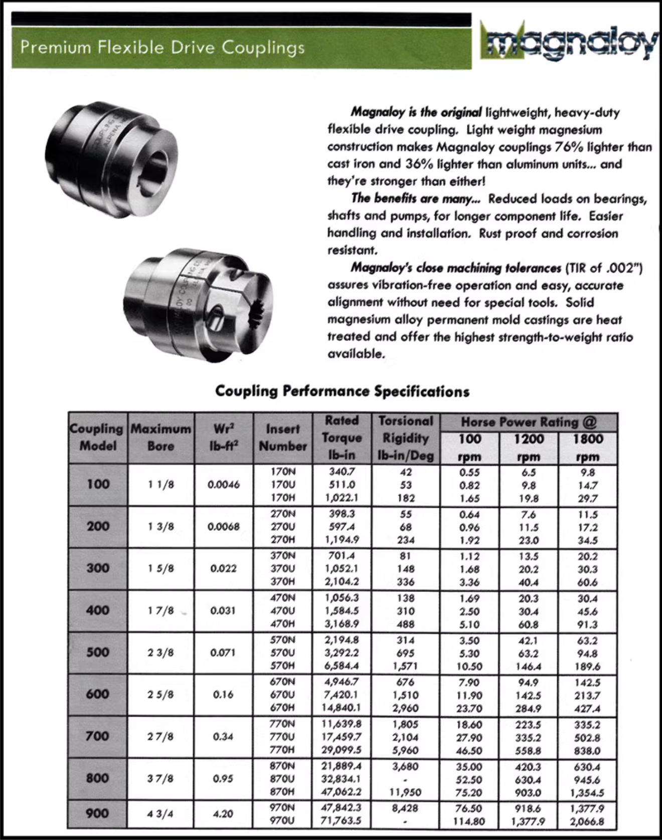 Important Note: Always consult the specific Magnaloy product catalog, engineering data, or a qualified distributor/engineer to select the exact coupling type and size based on your application's torque, speed, misalignment, environmental conditions, and space constraints. Rexnord provides detailed selection guides and software for this purpose.